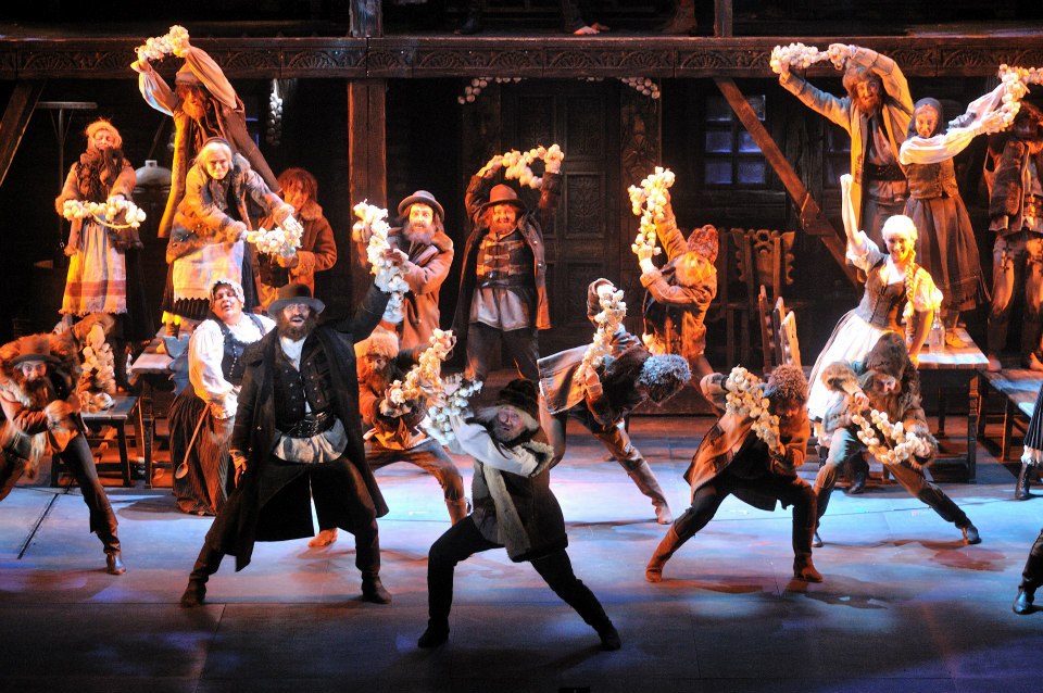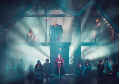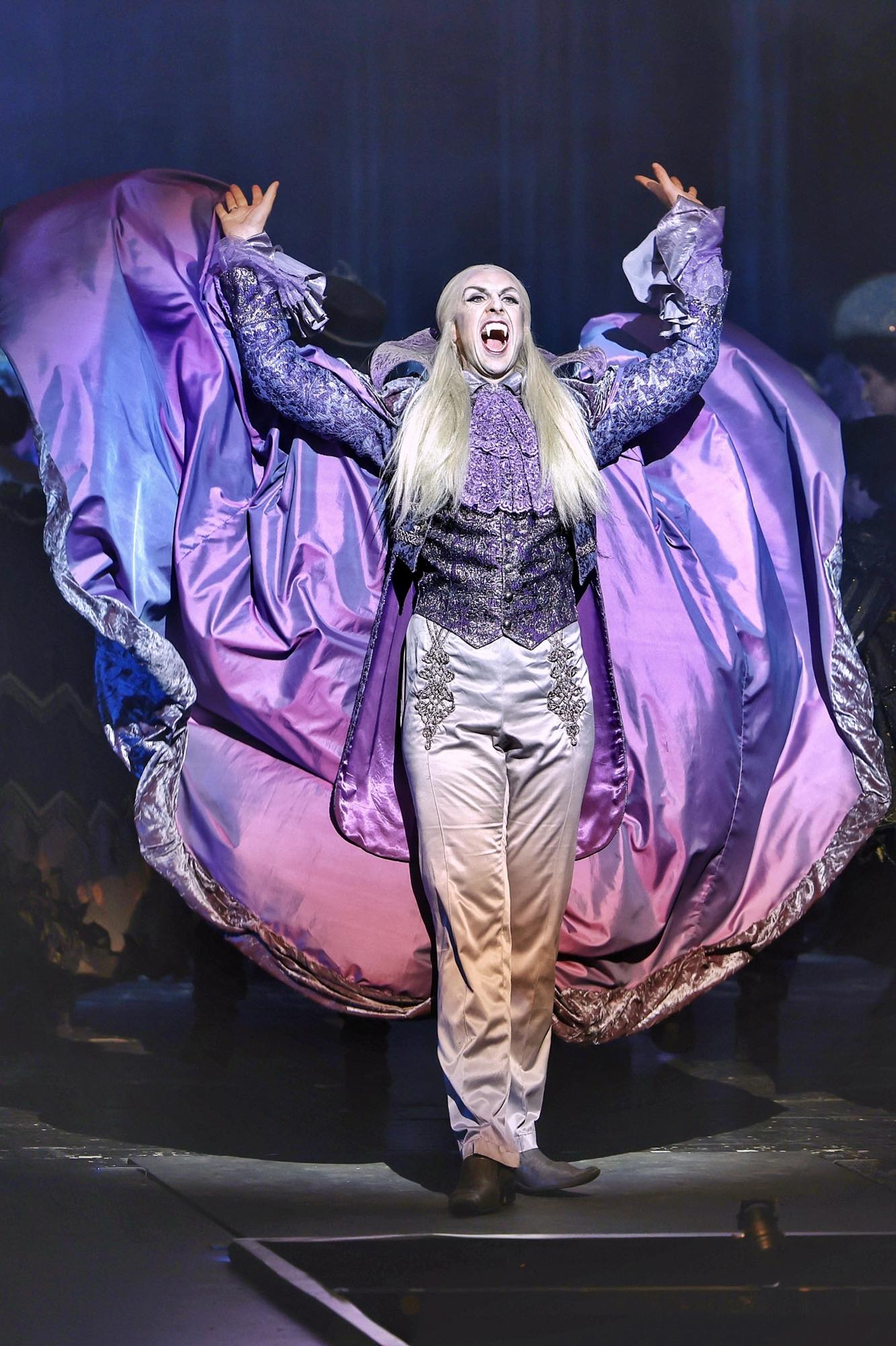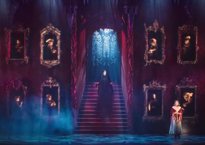 The costumes of the characters, familiar to all since childhood, reflected their characters, they were bright and memorable. In Snow White’s outfit, costume designer Rita Velich emphasized her youth and sweetness by using festive white in her wedding dress. The Queen’s coolness was expressed by the dark palette of her outfits. The dwarfs’ costumes were very well-thought-out, but what impressed the most was their intricate make-up.